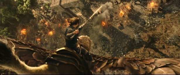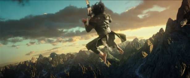 Тизер стартует с момента, как герой выпрыгивает в окно и его ловит поджидающий рядом грифон. Это сцена, от которой дух захватывает и по ней можно устроить отдельный разбор. Дункан Джонс любит в своих фильмах использовать кадры восхода или заката на фоне гор, и это действительно очень красивая концепция, которая никогда не приестся. Стоит сказать, что почти во всех кадрах, которые мы видим в тизере, солнце не в зените и освещённость несколько приглушена. В такие моменты свет ведёт себя несколько необычно в виду чего его коррекция и работа с тенями становится довольно сложной задачей. Стоит сказать, что наиболее глазастые критики уже увидели некоторые ошибки в данном аспекте.